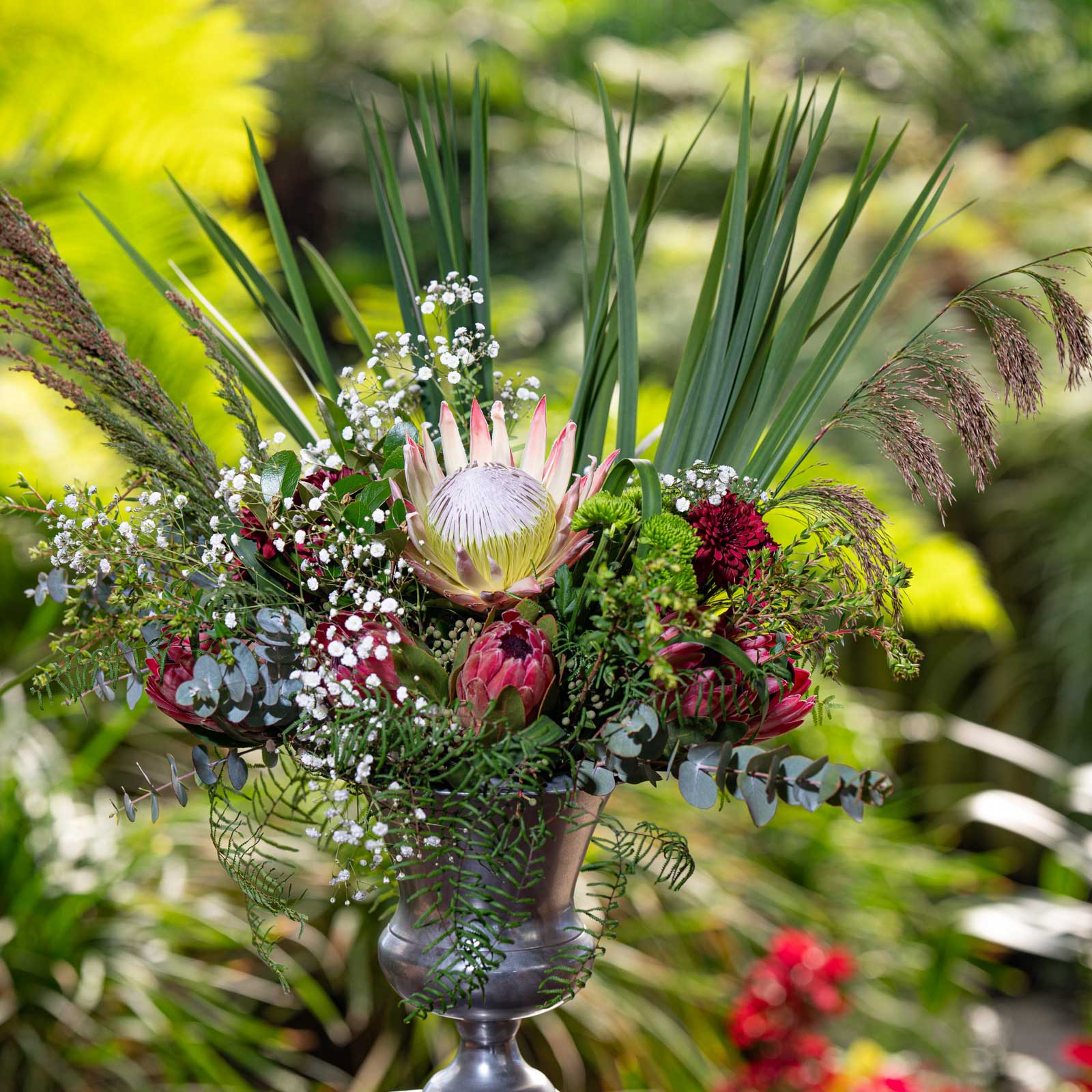 Nestled below the majestic Tsitsikamma Mountains, Forest Ferns specialising in growing and cultivating South Africa’s iconic proteas, ferns and fynbos species. With the dramatic peaks as our backdrop, we carefully tend diverse varieties that thrive in this unique microclimate. Each bloom is handpicked at peak perfection, then artfully arranged into breathtaking bouquets that capture the wild beauty of the region.